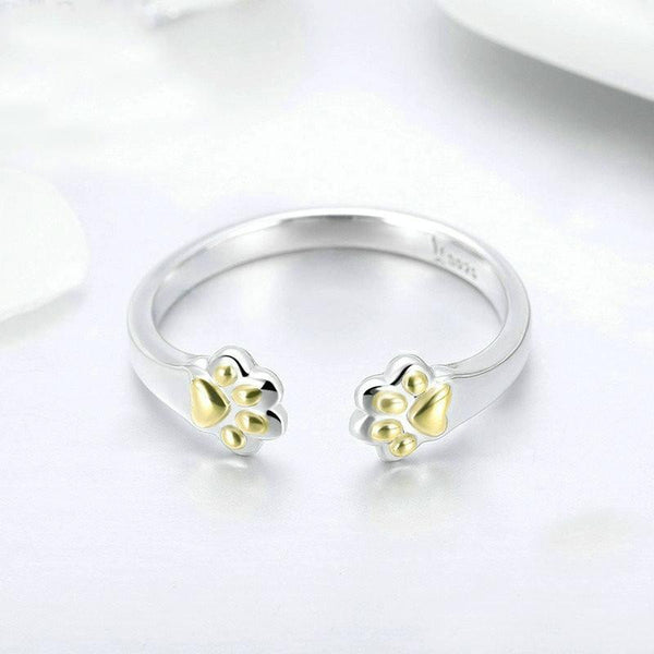 S925 Sterling Silver Temperament Female Ring Paw Print Gold-plated Ring