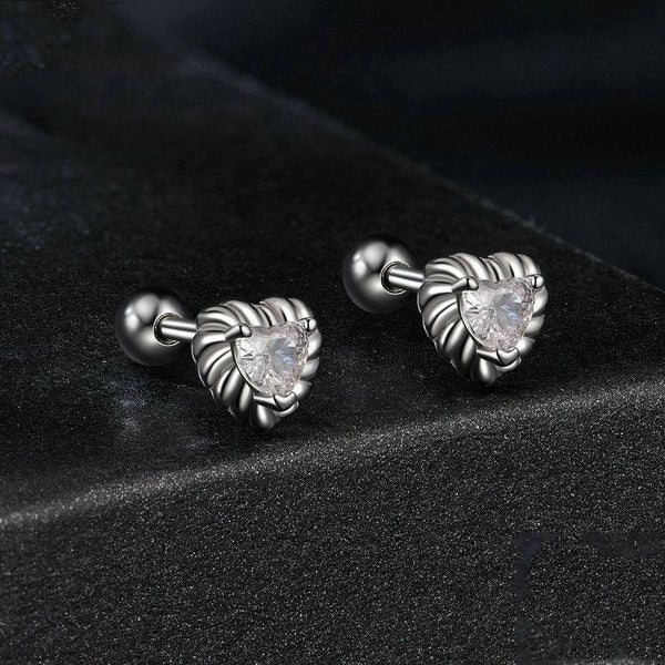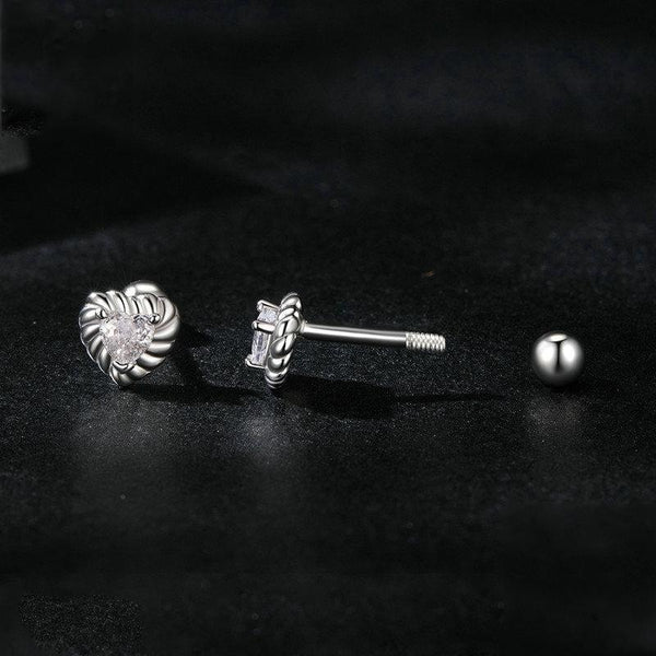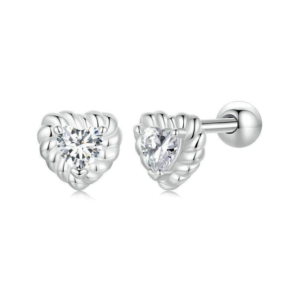 S925 Sterling Silver Threaded Shining Moissanite Heart Earrings(MSE052)