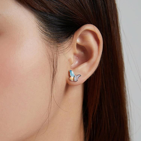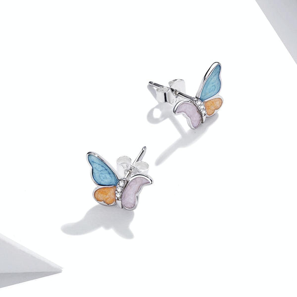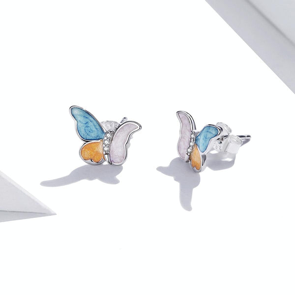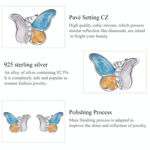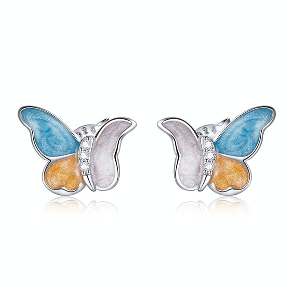 S925 Sterling Silver Three Colors Butterfly Ear Studs Women Earrings