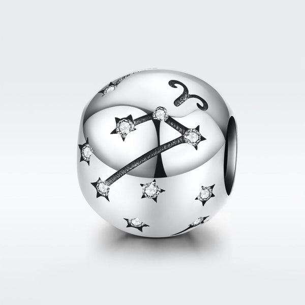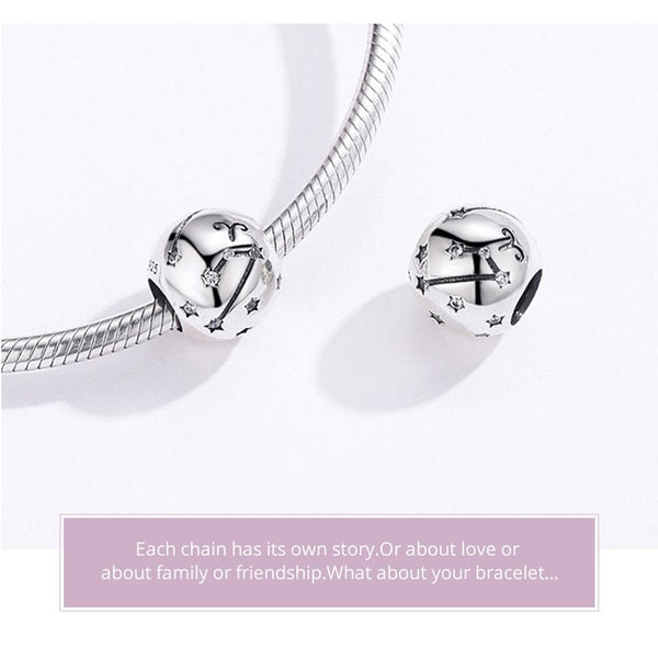 S925 Sterling Silver Twelve Constellation Beaded DIY Bracelet Accessories Jewelry Silver Beads, Style:Aries