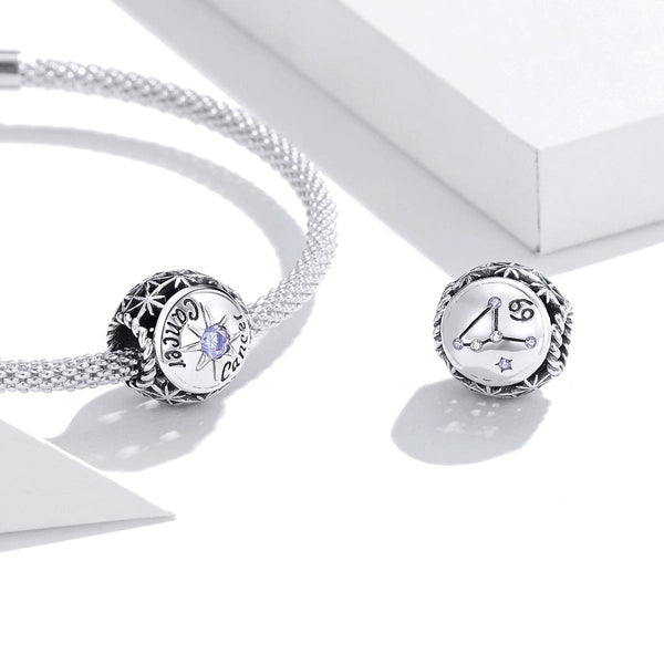 S925 Sterling Silver Twelve Constellation Zircon Beads DIY Bracelet Necklace Accessories, Style:Cancer