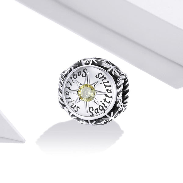 S925 Sterling Silver Twelve Constellation Zircon Beads DIY Bracelet Necklace Accessories, Style:Sagittarius
