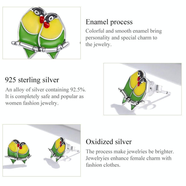 S925 Sterling Silver Two Orioles Ear Studs Women Earrings