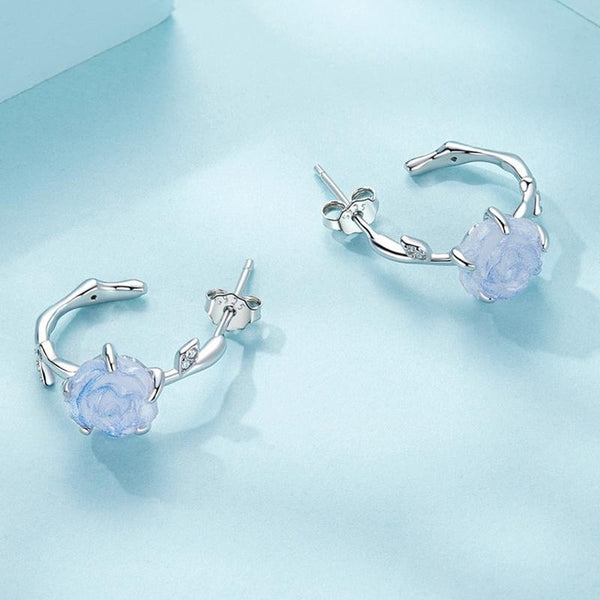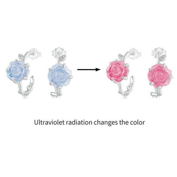 S925 Sterling Silver Ultraviolet Color-Changing Rose Earrings(SCE1729)