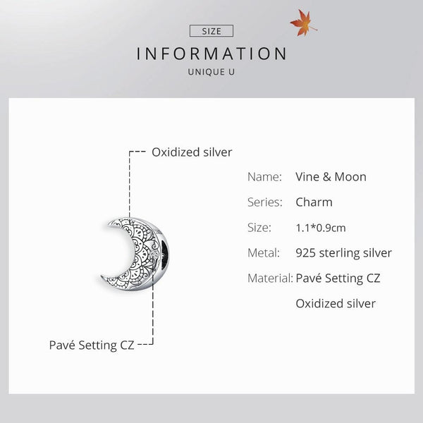 S925 Sterling Silver Vine Moon Beads DIY Bracelet Necklace Accessories