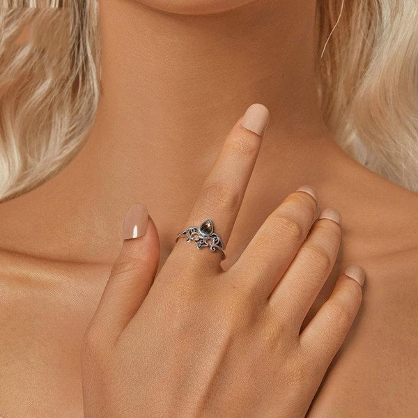 S925 Sterling Silver Vintage Iris Open Adjustable Ring(SCR1016-E)