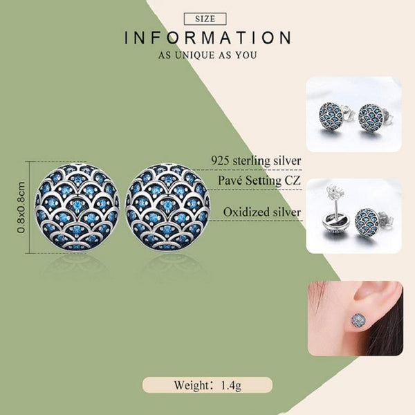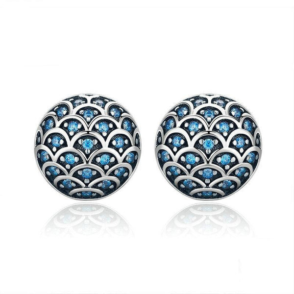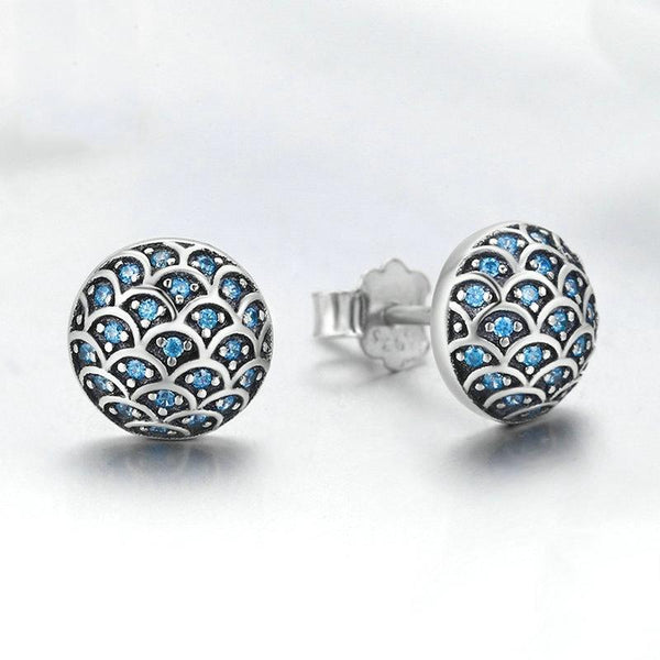 S925 Sterling Silver Wave Pattern Earrings Inlaid Blue Crystal Earrings