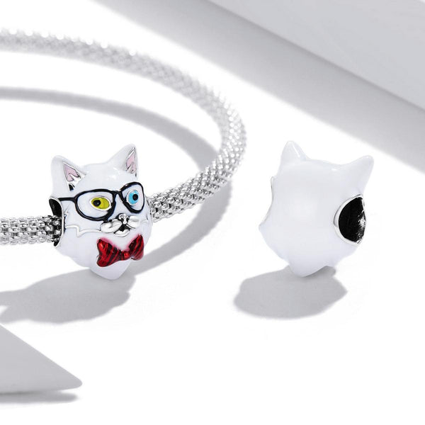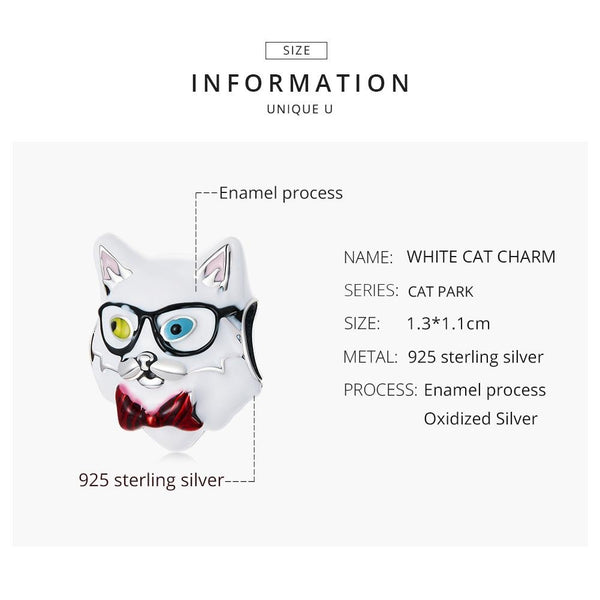 S925 Sterling Silver White Cat Beads DIY Bracelet Necklace Accessories