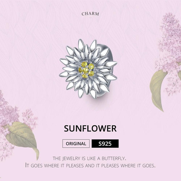 S925 Sterling Silver White Sunflower Beads DIY Bracelet Necklace Accessories