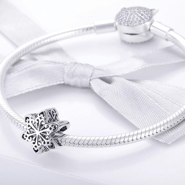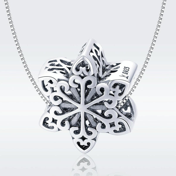 S925 Sterling Silver Winter Snowflakes Beads DIY Bracelet Necklace Accessories, Color:Silver