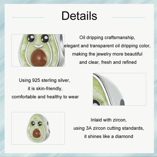 S925 Sterling Silver With Platinum DIY Cute Avocado Beads(SCC2823)