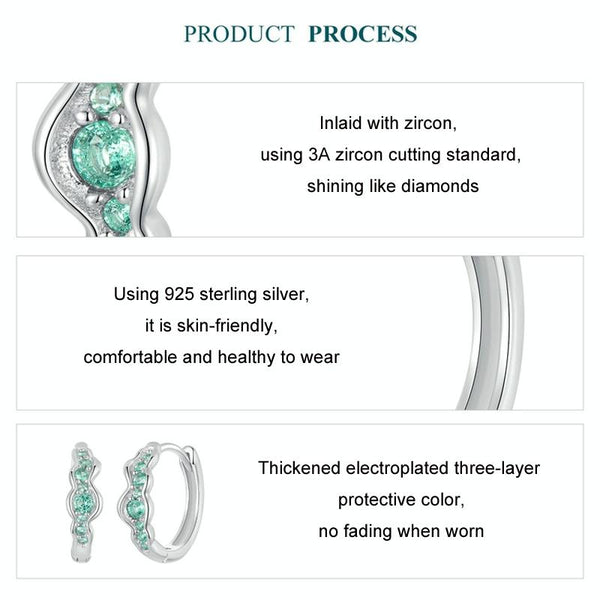 S925 Sterling Silver With Platinum-Plated Sweet Green Ocean Wave Earrings(BSE1034)