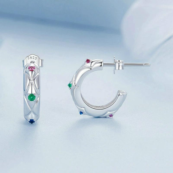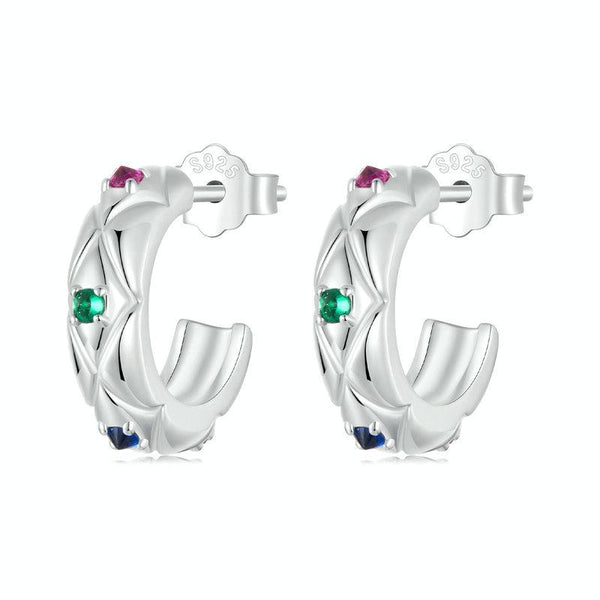 S925 Sterling Silver With Platinum-plated Vintage Diamond Pattern Earrings(BSE1032)