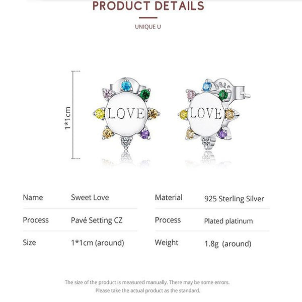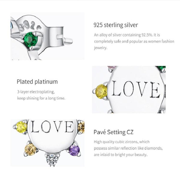 S925 Sterling Silver Zircon Earrings Love Sterling Silver Hypoallergenic Earrings