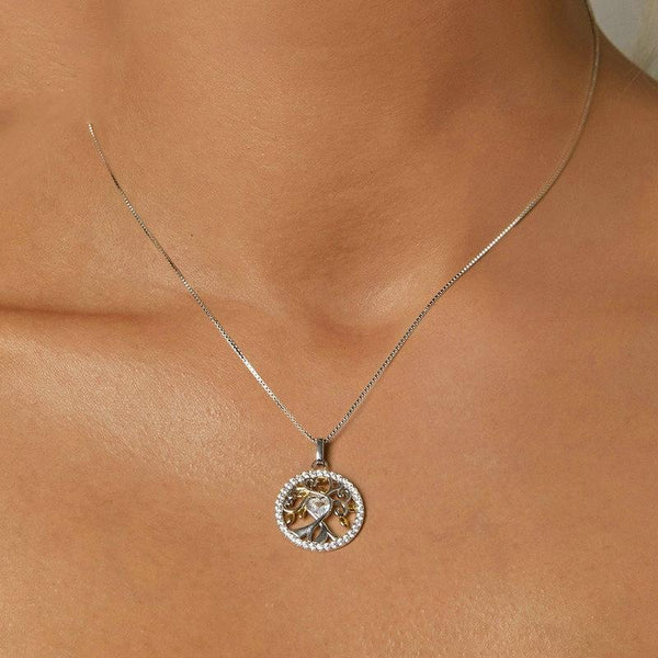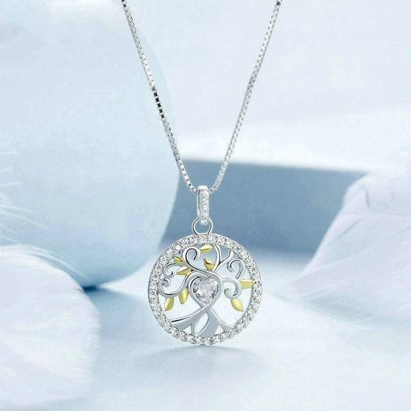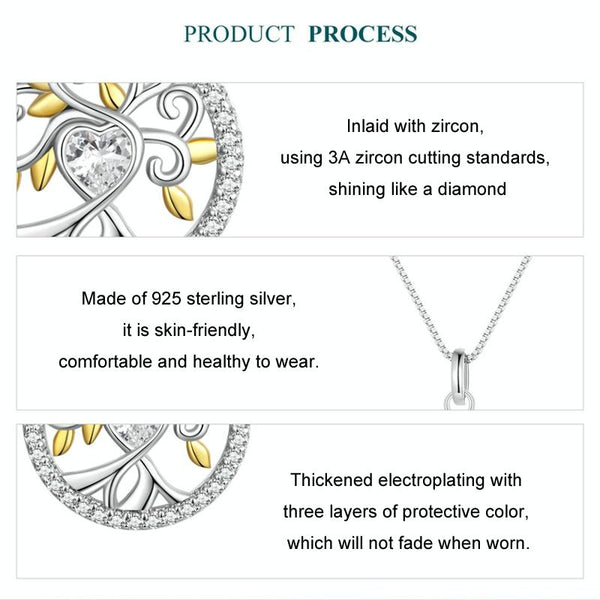 S925 Sterling Silver Zircon Gold Plated Tree Of Life Necklace(BSN371)