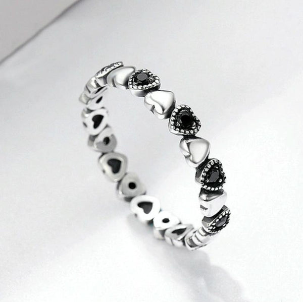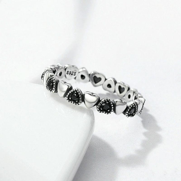 S925 Women Sterling Silver Inlaid Gemstone Ring Diamond Ring Heart-shaped Ring, Size:6