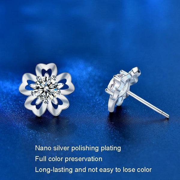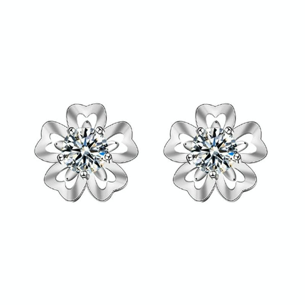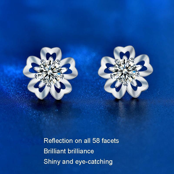 Sakura Earrings 925 Silver Needle Flower Earrings(50 Points Mosan Diamond White Gold)