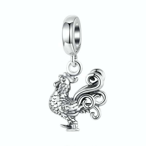 SCC1337 Rooster 925 Silver Pendant DIY Bead Bracelet Accessories