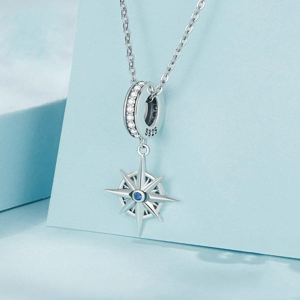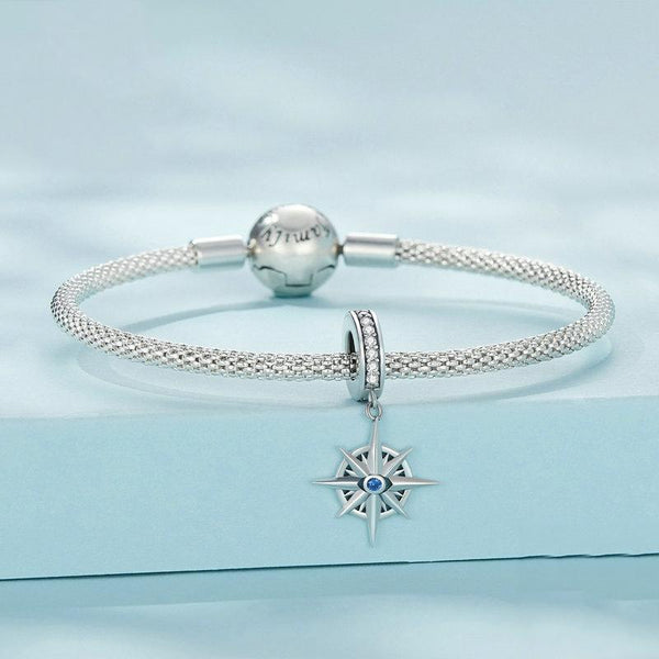 SCC2422 S925 Sterling Silver Sparkling Zircon Devils Eye Compass Bracelet Beads