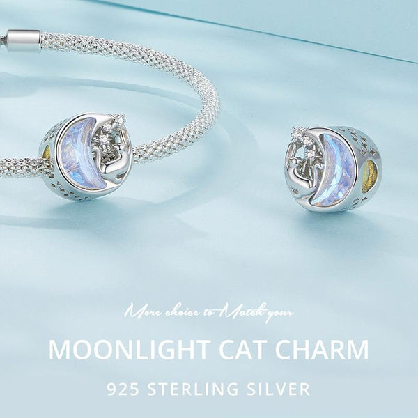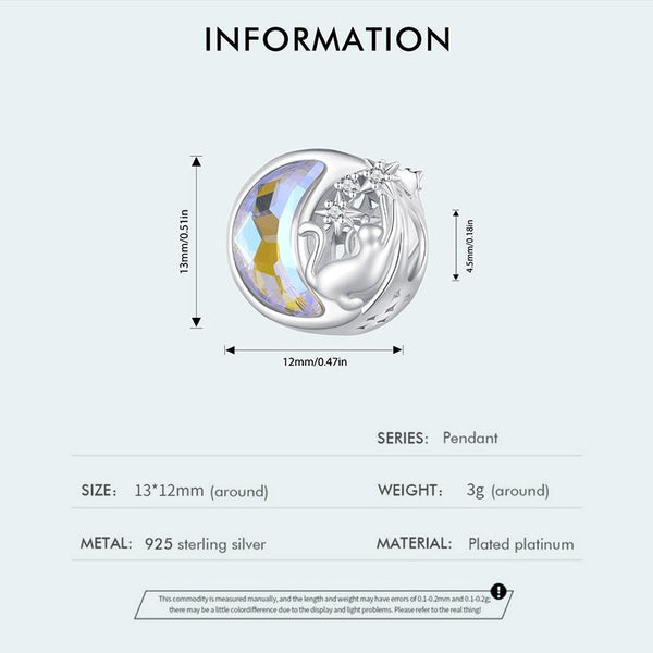 SCC2538 S925 Sterling Silver Necklace Pendant Accessories Cute Cat Moon DIY Bracelet Beads