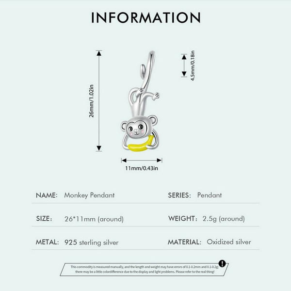 SCC2547 S925 Sterling Silver Cute Upside Down Monkey Pendant Accessories DIY Bracelet Beads