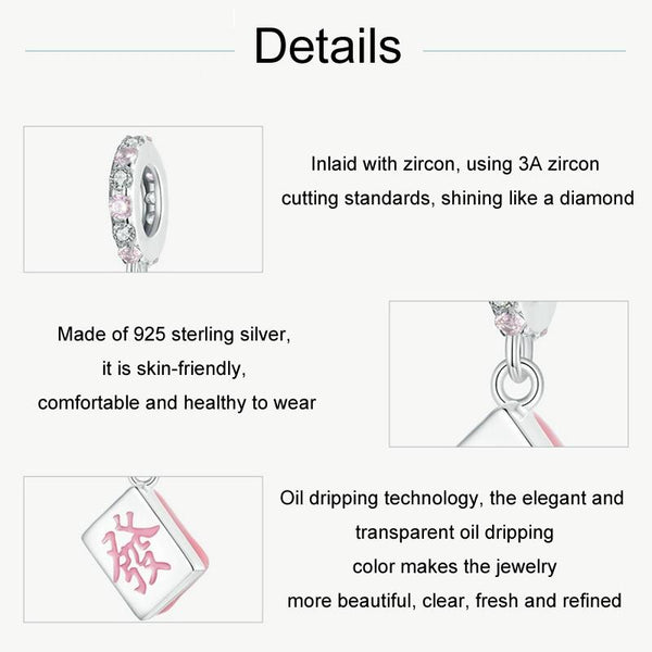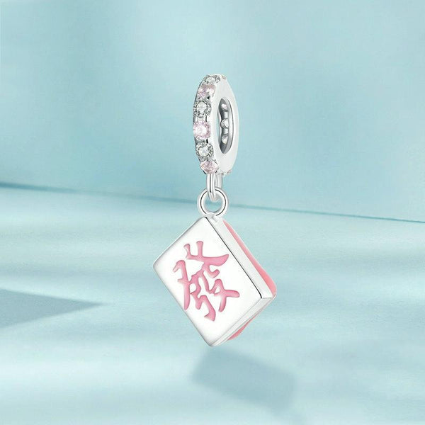 SCC2718 S925 Sterling Silver Lucky Fortune Mahjong DIY Pendant