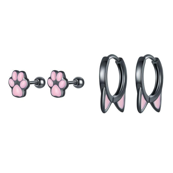 SCE1516 Cat Ears Claws Earrings 925 Silver Plated Black Gold Earrings