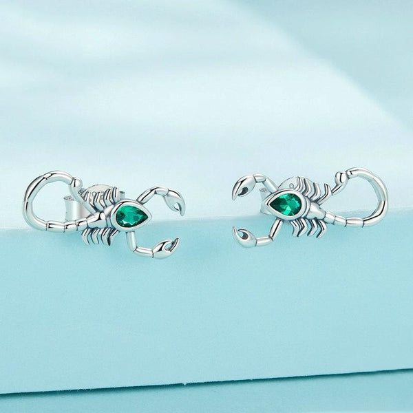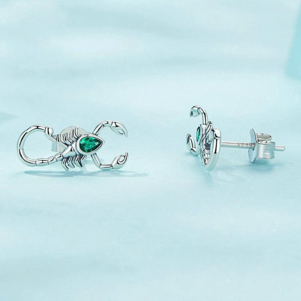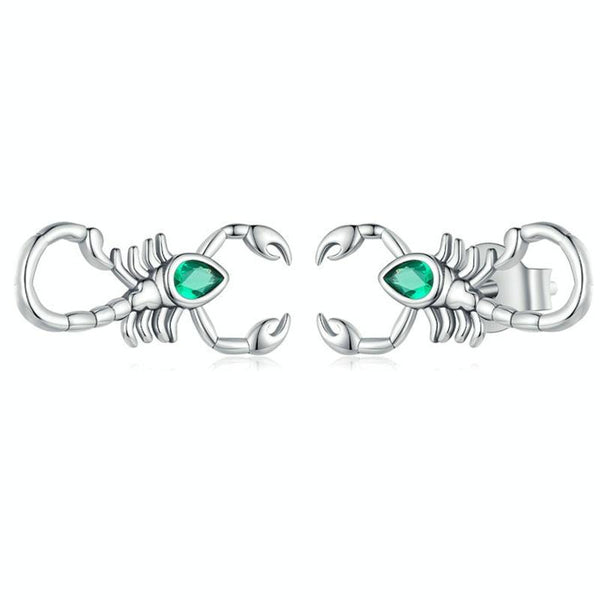 SCE1555 Sterling Silver S925 Green Zircon Scorpion Insect Stud Earrings