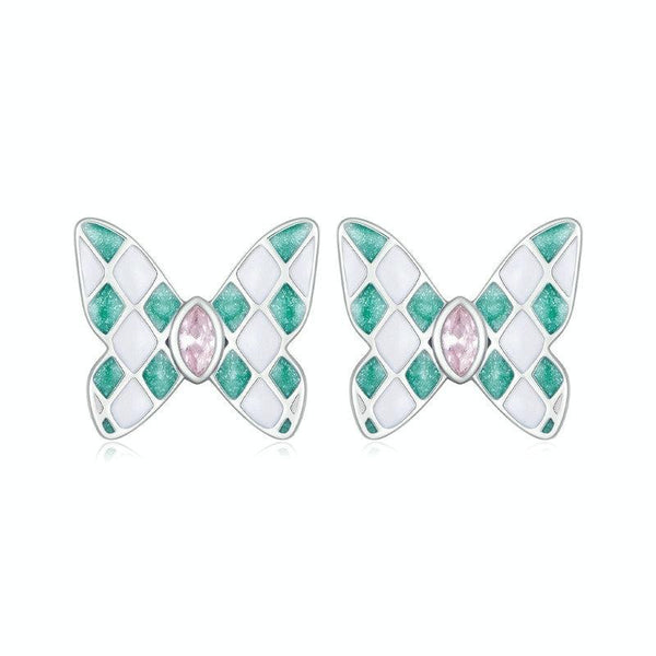 SCE1610 Sterling Silver S925 White Gold Plated Zircon Rhombus Spot Butterfly Stud Earrings