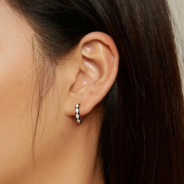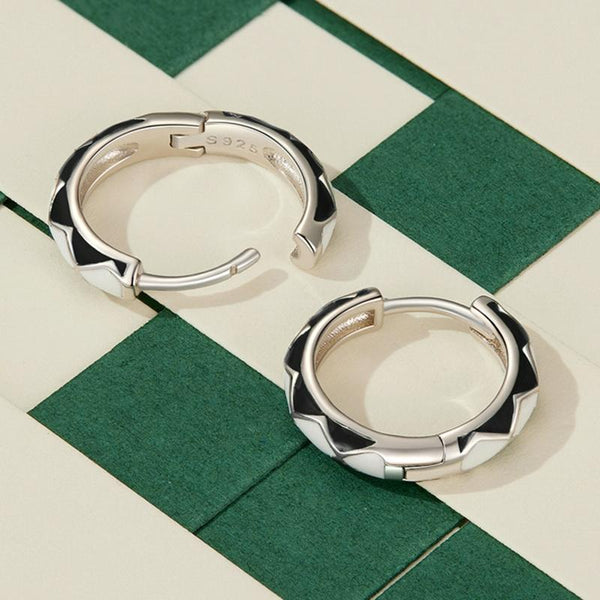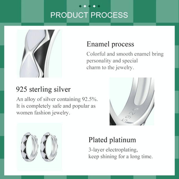 SCE1611-BK Sterling Silver S925 White Gold Plated Fashion Rhombus Earrings(Black)
