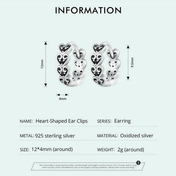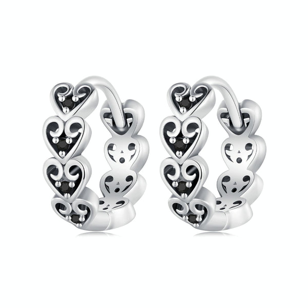 SCE1613 Sterling Silver S925 Black Heart Shape Earrings