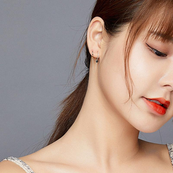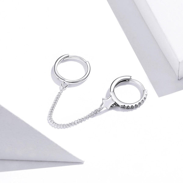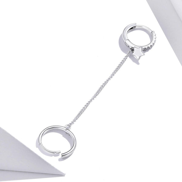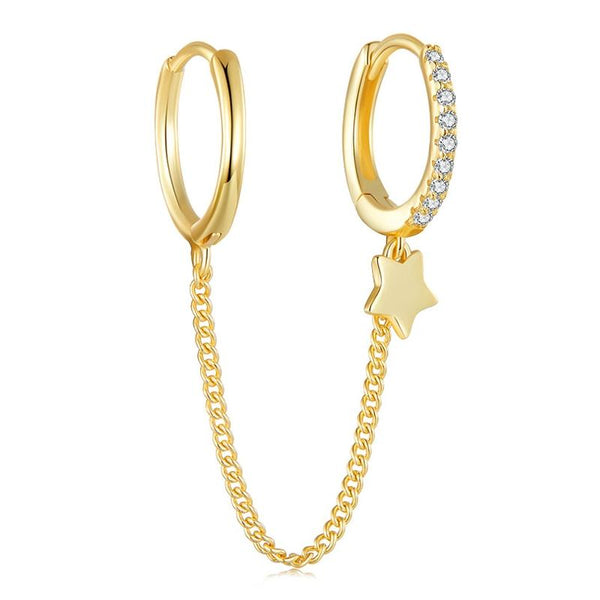 SCE914-B Sterling Silver S925 Zircon Fashion Double Pierced Star Earrings(Gold)
