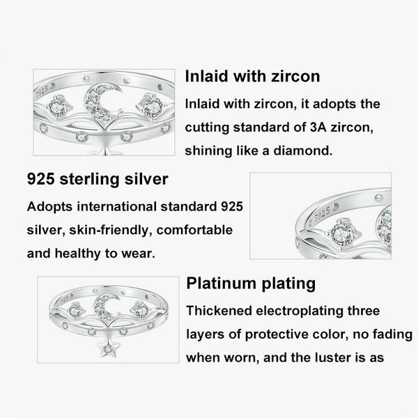 SCR1046 S925 Sterling Silver Platinum-plated Romantic Star and Moon Ring(6)