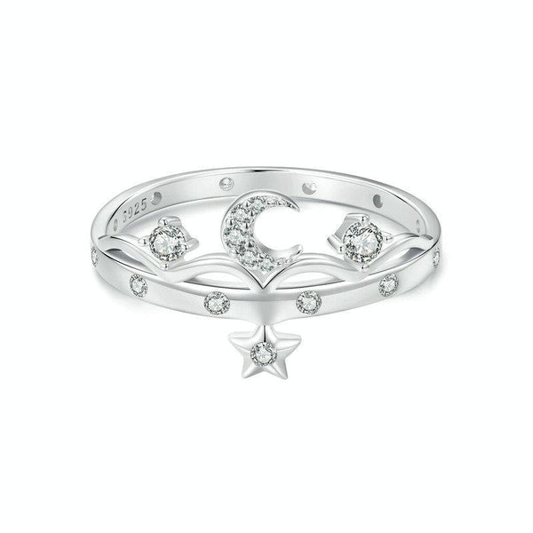 SCR1046 S925 Sterling Silver Platinum-plated Romantic Star and Moon Ring(7)