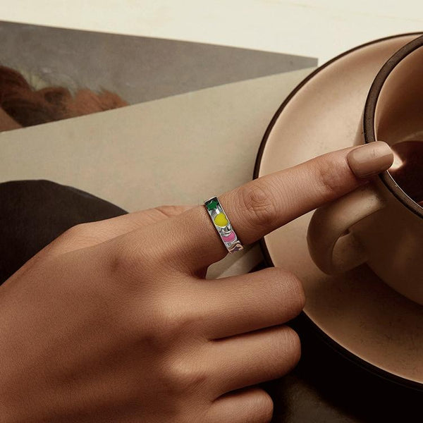 SCR1068 S925 Sterling Silver Plated with Platinum Color Drip Oil Ring(7)