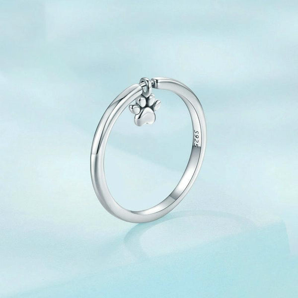 SCR892 Sterling Silver S925 Cute Animal Dog Paw Print Movable Ring(No.6)