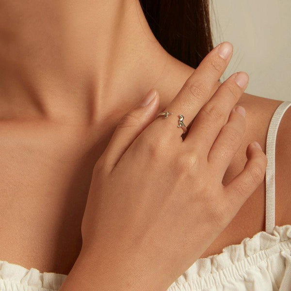 SCR894 Sterling Silver S925 Dachshund Cute Open Ring