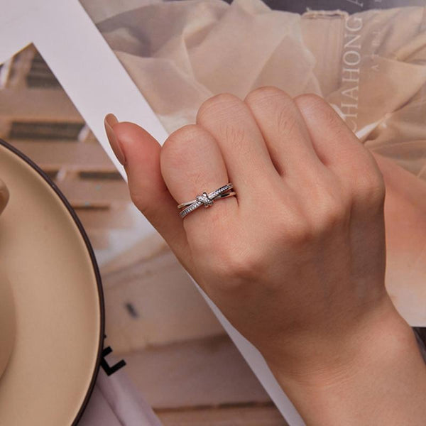SCR896 Sterling Silver S925 Knot All-Match Zircon Ring(No.8)