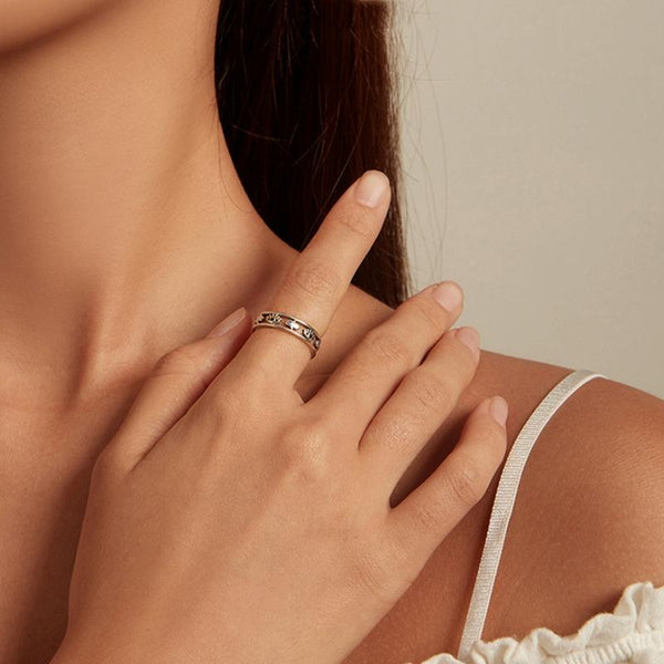 SCR900 Sterling Silver S925 Devil Eye Cutout Symbol Zircon Ring(No.8)