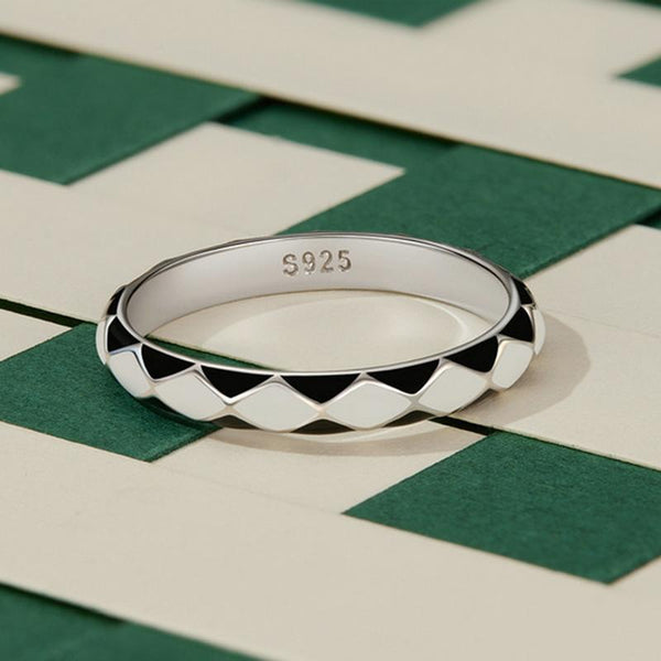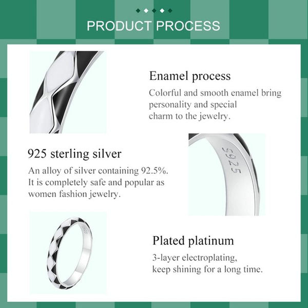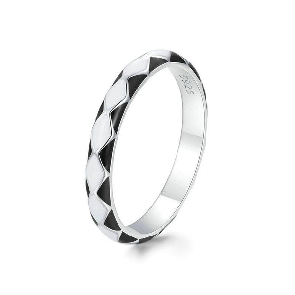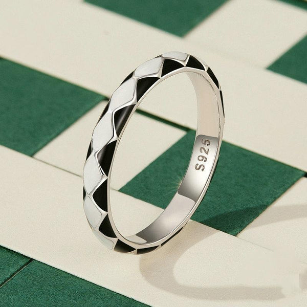 SCR943-7 S925 Sterling Silver Personalized Black White Diamond Texture Ring Hand Decoration