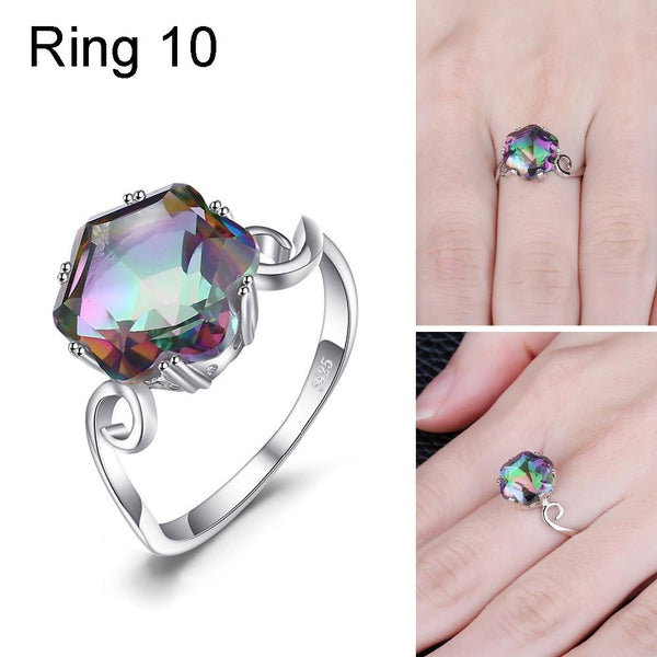 Seven Colored Gemstone Zircon Ring Solid 925 Sterling Silver Jewelry Ring 10