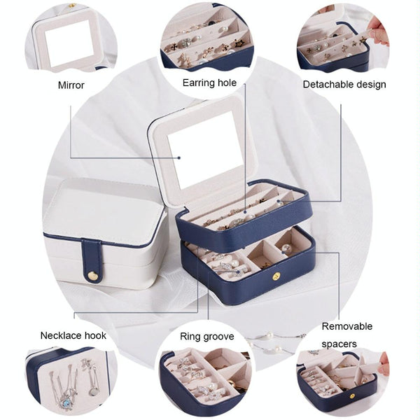 SH688-58 Square Double-Layer PU Earring Storage Jewelry Box(Light Blue)
