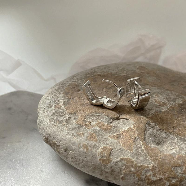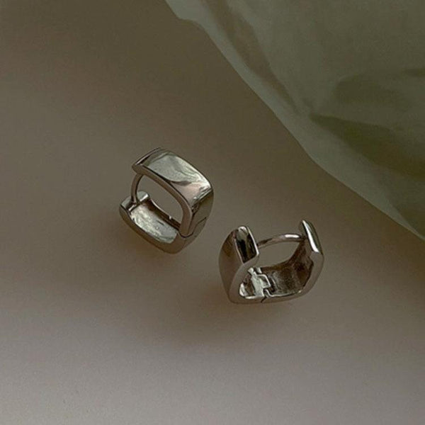 Silver Needle Wide Square Earrings Buckle Type Easy Wear Without Picking Earrings