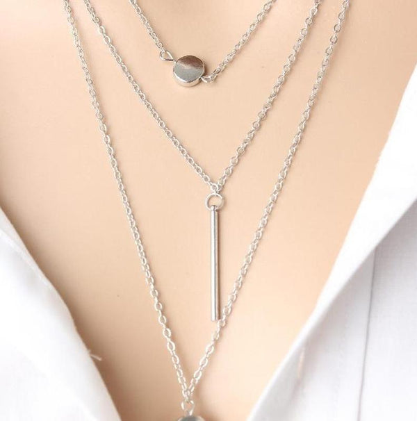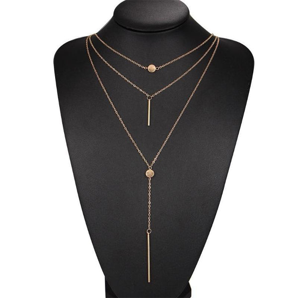 Simple 3-Layer Necklace Small Dot Exquisite Metal Bar Necklace Sweater Chain(Gold)