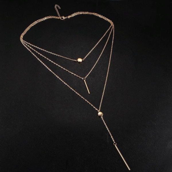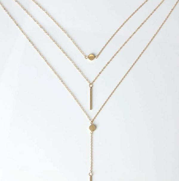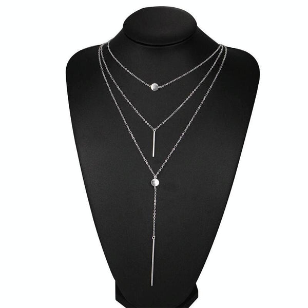 Simple 3-Layer Necklace Small Dot Exquisite Metal Bar Necklace Sweater Chain(Silver)
