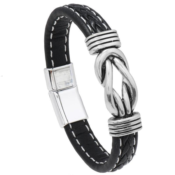 Simple Alloy Magnetic Clasp Leather Bracelet Personalized Braided Bracelet, Style: Black 21cm
