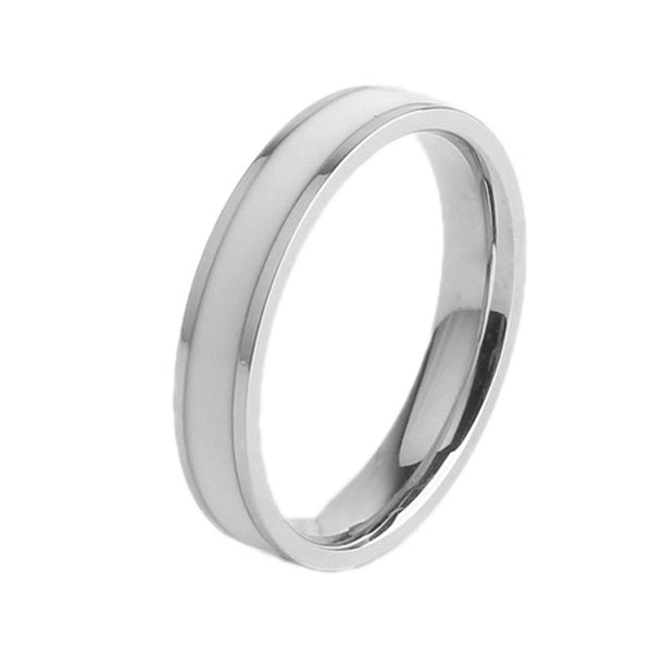 Simple Black White Epoxy Couple Ring Women Titanium Steel Ring Jewelry, Size: US Size 4(White Glue Silver)