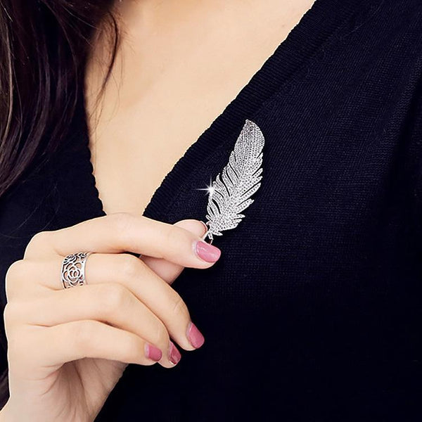 Simple Lady Feather Pattern High-grade Platinum Suits Corsage Brooch