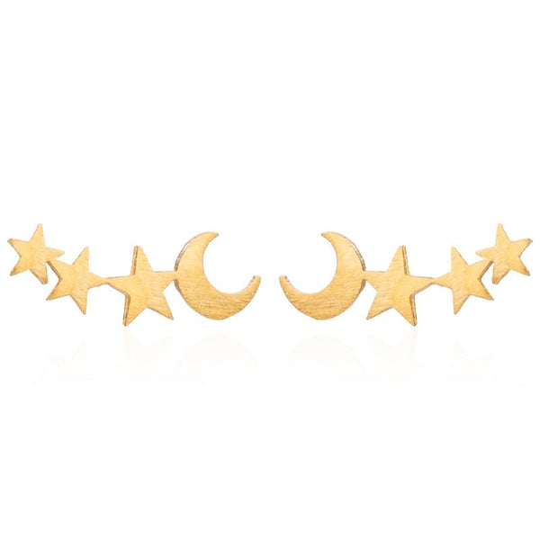 Simple Moon Star Stud Earrings for Women Birthday Gift Jewelry(Gold)