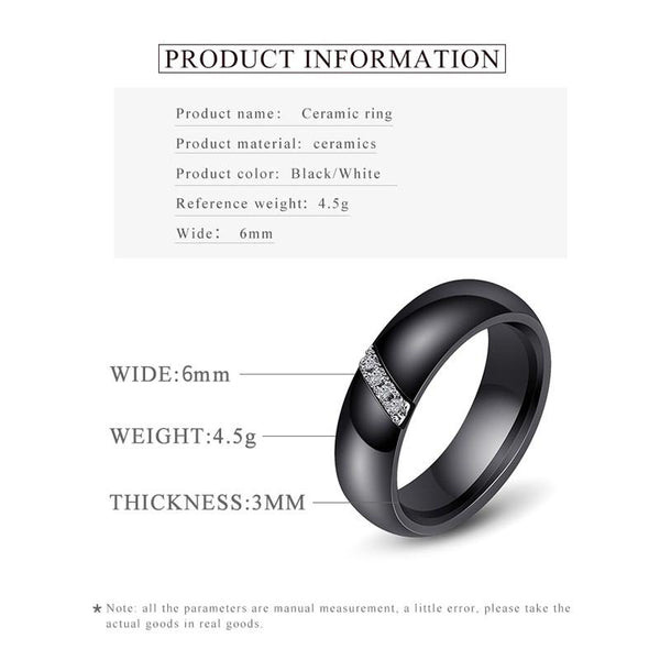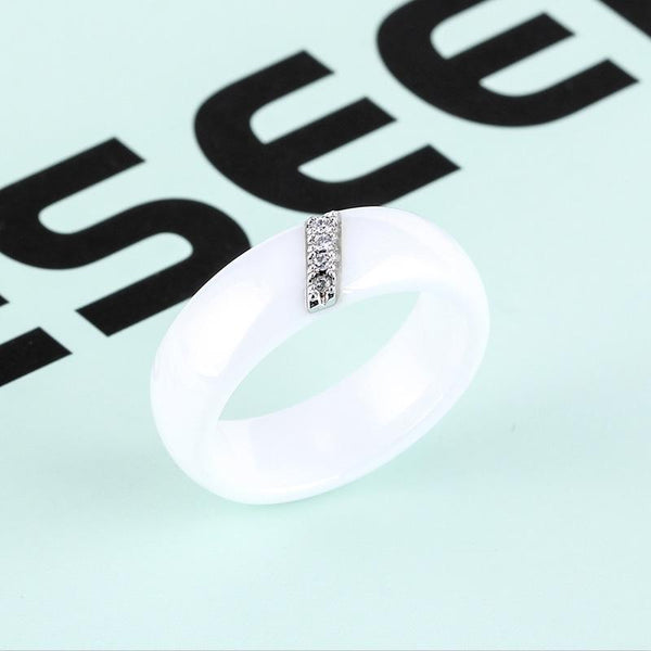 Simple Nano Ceramic Ring Trend Titanium Steel with Zircon Rings, Ring Size:10(White)